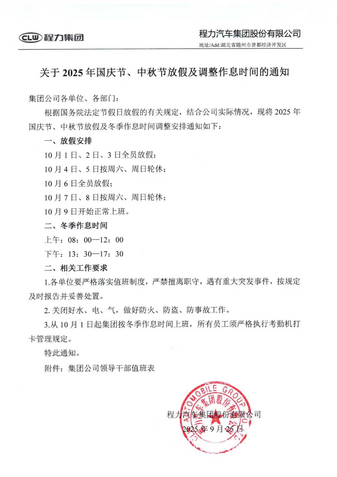 “滄海橫流顯砥柱,萬山磅礴看主峰”。時間飛逝,眨眼迎來了元旦之際。我們告別了意義非凡的2024年,迎來充滿希望的2025年,在這美好而充滿向往的時刻,程力汽車集團向長期以來關心支持公司發展的各級領導、社會各界朋友、合作伙伴,致以最深切的感恩與致敬;向忠誠于企業,勤奮奉獻的全體同仁、銷售經理、一線員工,致以最崇高的敬意與最溫暖的節日問候,向大家表達最誠摯的新年祝福!