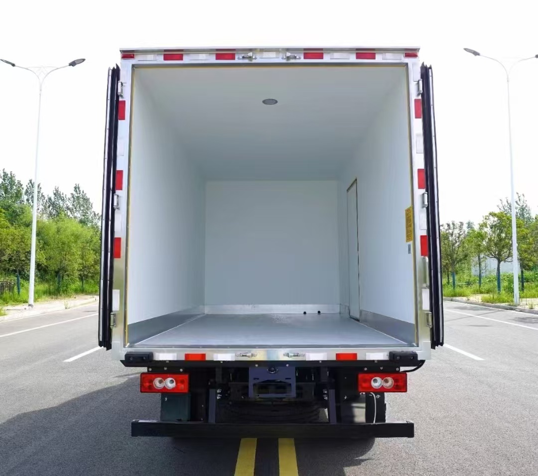 福田奧鈴CTV寬體4米2國六冷藏車箱體采用的是新式的工藝,里面裝有保溫隔板。可運輸海鮮魚蝦類水產、日常生活蔬菜水果類、豬牛羊肉等肉類食品、鮮奶冷飲等食品運輸。該車設備可加裝肉鉤直軌、屠宰場對接式導軌、備電系統、雙溫隔溫帶電子扇。