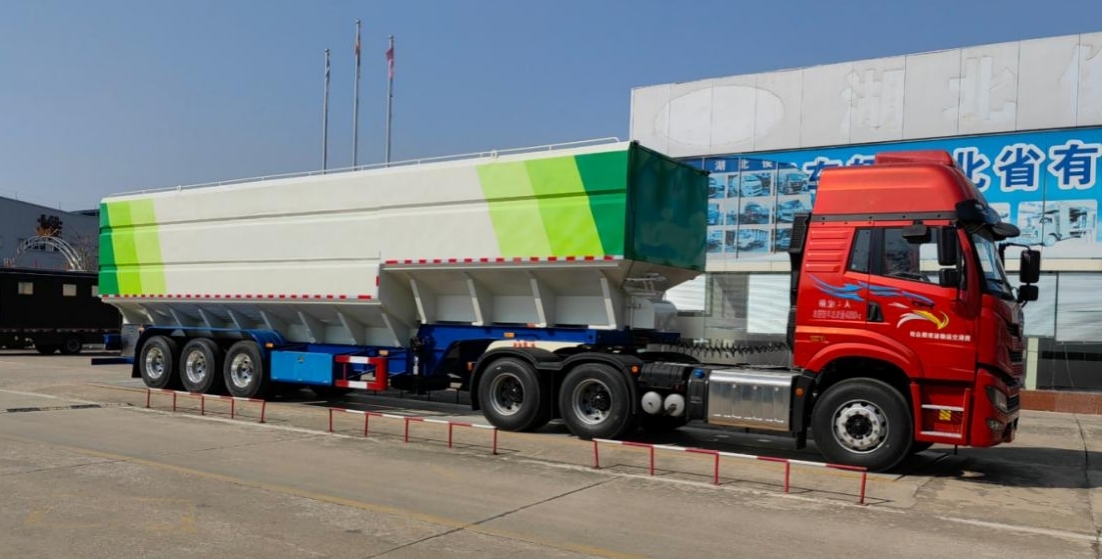 運輸糧食、玉米、飼料等物品都需要專用的車型,尤其是市場上都是為了省時方便,選擇了一款傳送帶專用的半掛糧食運輸車,以下是詳細配置介紹: